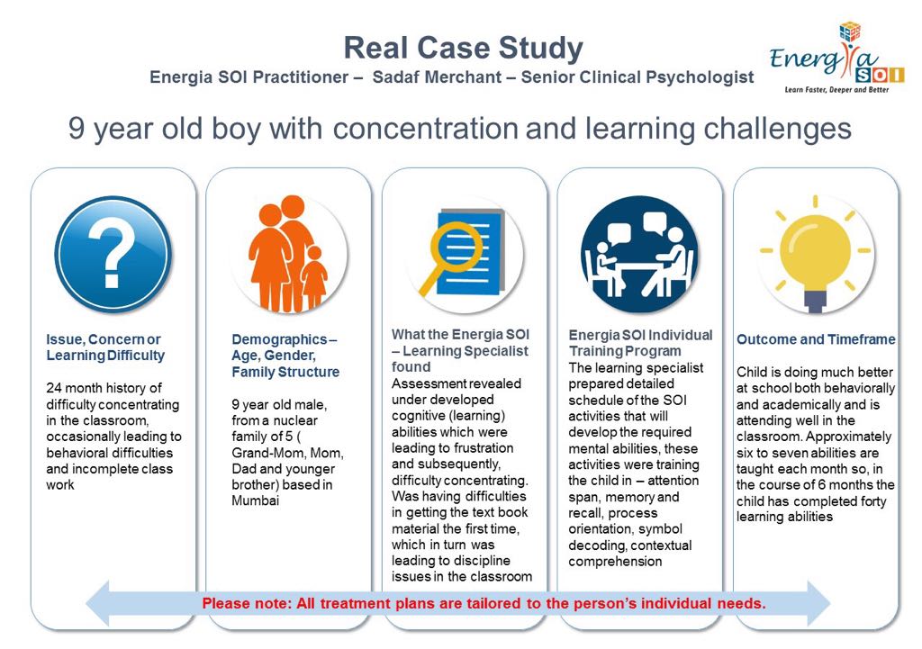It is a unique program, which is positively changing the way individual learn, this methodology of the program is helping people of all ages. Energia SOI program is changing the future of learning and building stronger academic foundations. This is a system of tests and training materials to develop intellectual learning abilities necessary for academic success. Train weak abilities and enhance strong ones. It is a US based program that provides you with the necessary tools so that all students can reach their full learning potential. The key to remedy learning failure is to know why the failure is occurring and to have a systematic approach for eliminating the cause. Existing since last 60 years