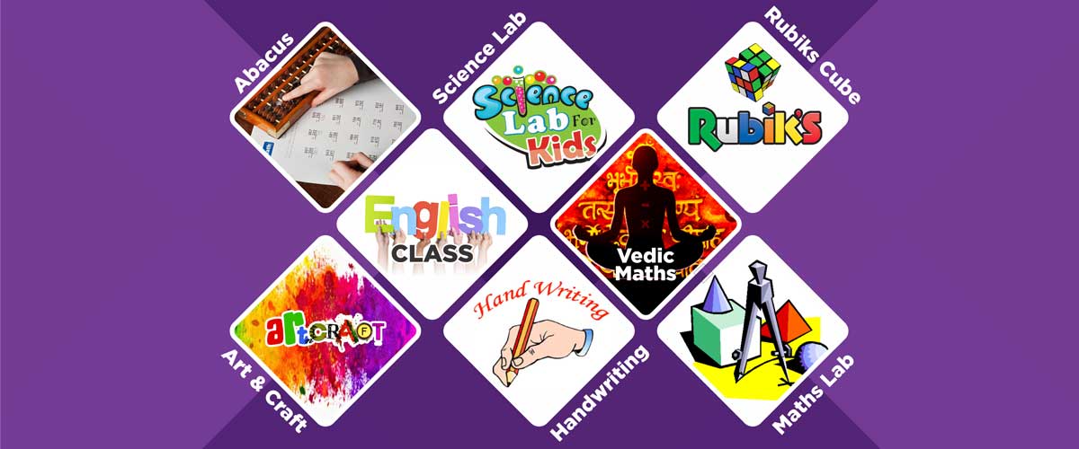 The various programs on offer are – Abacus, Vedic Maths, Handwriting, Calligraphy, Art & Craft, Phonics & Spellings, Rubik’s Cube, Math & Science Lab ( Unique Tutorial for teaching Math & Science )